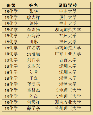 2018级化学班考研金榜 2019级化学班考研金榜
