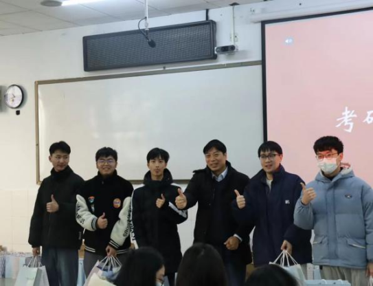 副院长唐石为今年参加研究生入学考试的每位学子送上精心准备的暖心礼包,鼓励每一位考研同学保持积极的心态,面对困难和压力勇往直前。学工办刘卫老师为同学们细致讲解了考研注意事项希望同学们能够珍惜这次机会,勇敢地追求自己的梦想,为实现中华民族伟大复兴贡献自己的力量。