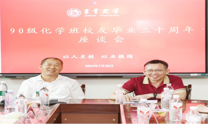 弹指一挥三十载,耿耿同学情依旧。2024年7月26日下午,我校90级化学班校友毕业30周年回访母校、追忆往昔,共叙同窗情谊。时任副校长张永康、化学系党总支书记尹如健、系主任姚祖凤,现任化学化工学院党委书记吴志祥、院长李佑稷以及相关任课老师受邀参加聚会。
